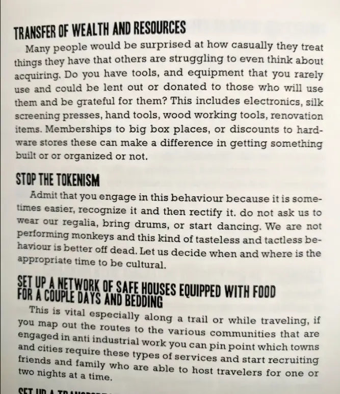Everyone Calls Themselves an Ally is a powerful and thought-provoking zine by Xhopakelxhit of Ancestral Pride, an Indigenous, grassroots, direct-action collective from unceded Ahousaht territory. This publication offers a grounded, honest look at what it truly means to be an ally, beyond slogans, social media posts, or performative gestures. It calls on white settlers and supporters of all kinds to recognize their strengths, acknowledge their limitations, and contribute to movements for justice in ways that are respectful, practical, and meaningful. Rather than promoting confrontation for its own sake, this zine invites readers to think about sustainable resistance and community care. It helps readers identify their own capacities, whether organizing, supporting, amplifying, or educating—and encourages a collaborative, non-hierarchical approach to activism that centers Indigenous and marginalized voices.