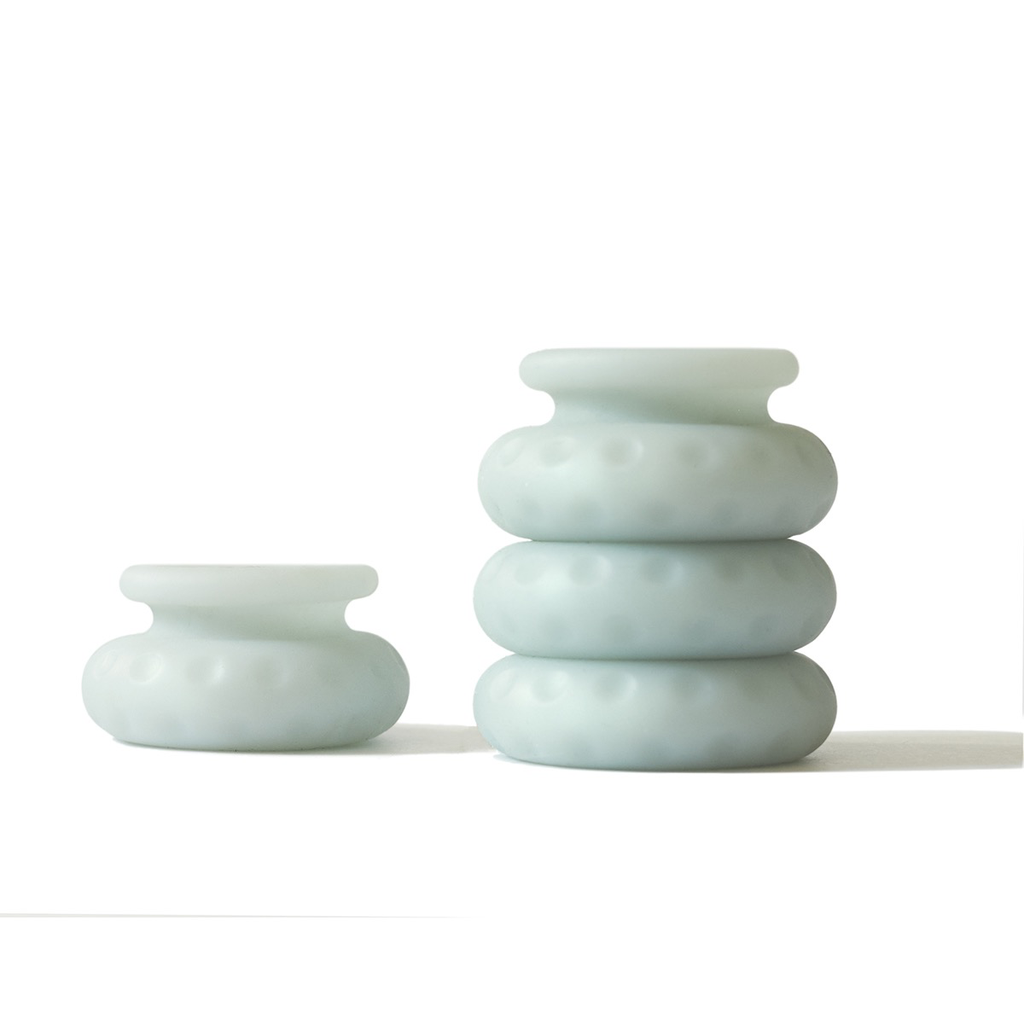 “It was effortless and unobtrusive. Very easy to adjust, adding or subtracting rings without disrupting sex. It also worked as a gentle cock ring, creating a strong, long lasting, and thick sensitive erection. I unexpectedly also loved the aesthetic, looked like jade bands fit for an emperor. As someone who experiences pain from penetration in a myriad of ways- starting with all the rings and taking them off one by one really allowed me time to relax without anticipating depth pain. My vag had time to tent and lube up more and the actual muscles were being pleasantly rubbed on without being stabbed. And since I wasn't tensing and wincing the muscles at the entrance relaxed reaaal quick.”